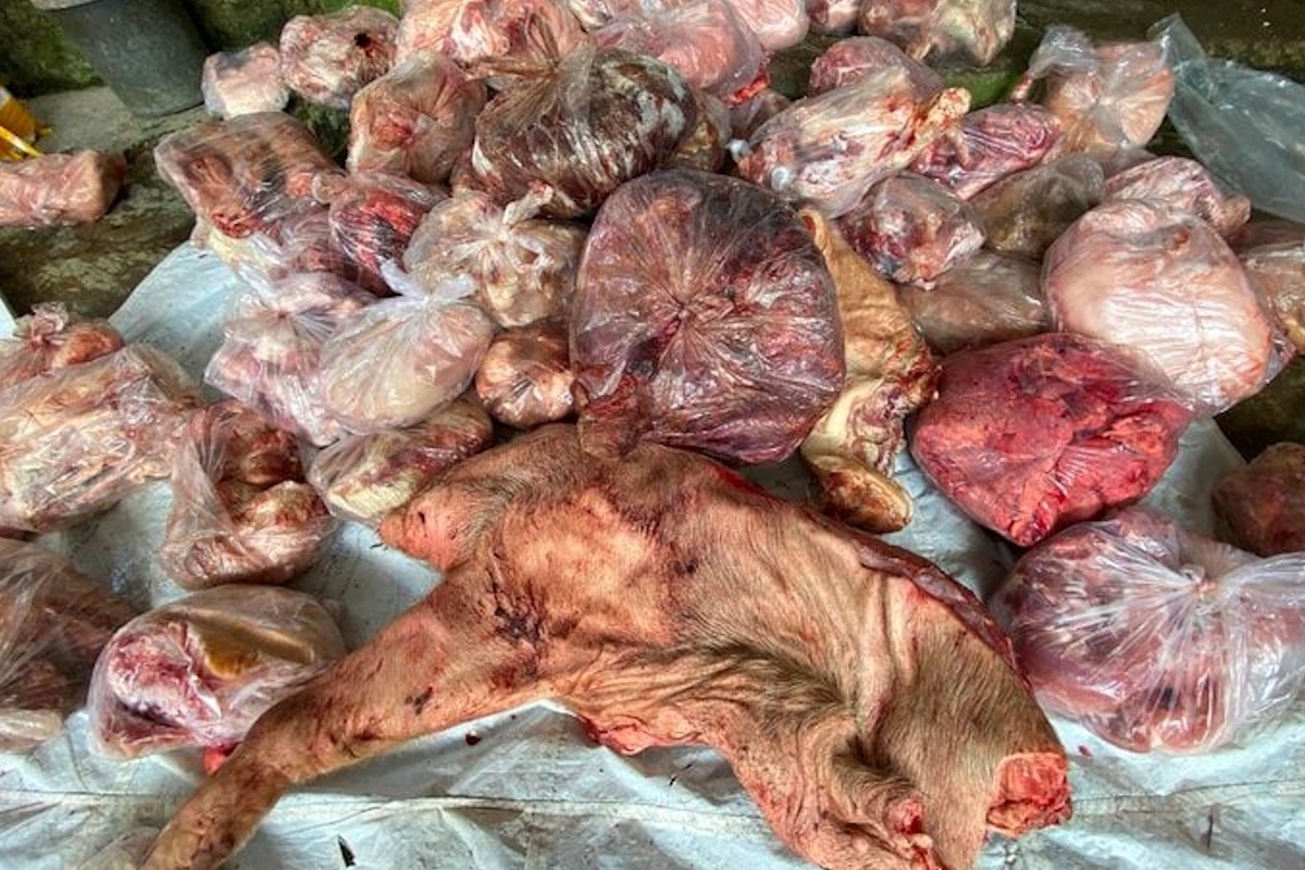 Kết quả xét nghiệm các mẫu vật lấy từ 3 tấn thịt, nội tạng lợn không rõ nguồn gốc tại kho đông lạnh ở TP Huế đều không đạt vệ sinh an toàn thực phẩm. (Ảnh: CACC)