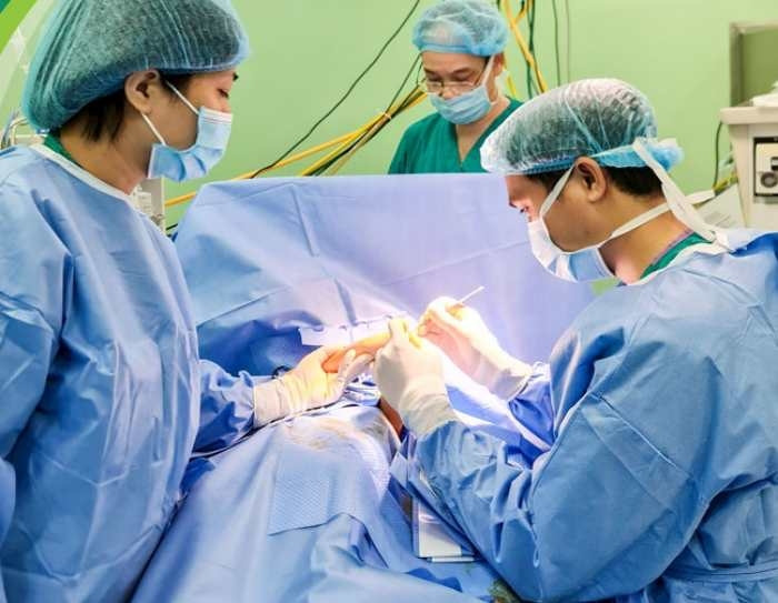 ThS.BS CKII Phùng Công Sáng cùng ekip phẫu thuật cho bệnh nhi.