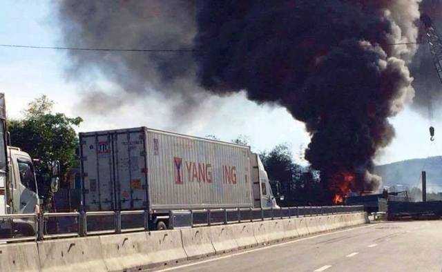Cú đâm quá mạnh khiến toàn bộ thép cuộn ở trên xe 73L-1573 tác động lực mạnh vào thùng dầu của xe Container 51R-014.09 dẫn đến phát lửa, bốc cháy ngùn ngụt. Ngọn lửa đã thiêu rụi hoàn toàn xe container 51R-014.09 và phần đầu của xe tải73L - 1573.