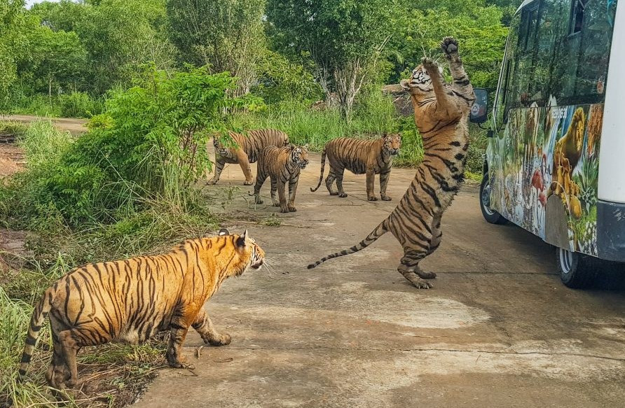 Hổ được nuôi theo hình thức bán hoang dã để du khách tham quan. (Ảnh minh họa: Vườn thú Mỹ Quỳnh)
