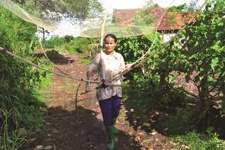 | Xong việc ruộng nương, bà Ngọ còn dùng chiếc vó này kiếm cá nhỏ về bán để lo cho gia đình. Ảnh: Hữu Phúc |