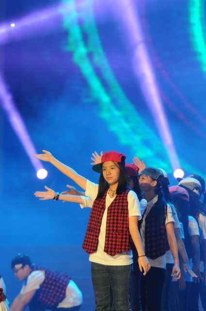 Bên cạnh những ca khúc quốc tế như Don’t stop believin’, One Small Voice, Titanium, The Tiki Tiki Tiki Room… được thể hiện bởi dàn học sinh thuần thục tiếng Anh, còn có những tiết mục nhảy Hip hop, múa cổ động tươi mới và thân thiện. ![]()