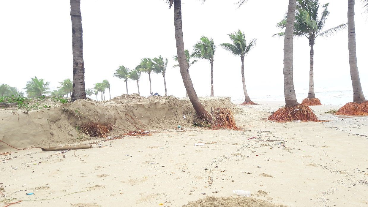 Tại bãi biển Mỹ Khê (bãi biển được tạp chí Forbes vinh danh là bãi biển hấp dẫn nhất hành tinh), mưa lớn và thủy triều dâng đã "ngoạm" mất đoạn bờ biển kéo dài 300m. Ven đường Võ Nguyên Giáp, nhiều cây dừa bị xới tung gốc.