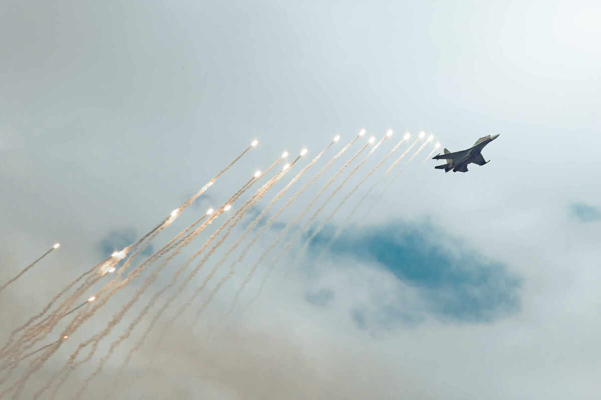 Khoảng 7h, hàng vạn người dân được tận mắt chứng kiến màn trình diễn của tiêm kích Su-30MK2 và Yak-130. Trong buổi tổng duyệt, chiến đấu cơ Việt Nam không chỉ bay theo đội hình chuẩn xác mà còn thả mồi nhiệt – loại biện pháp phòng thủ nhằm đánh lạc hướng tên lửa hồng ngoại.