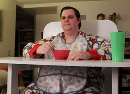 Anh tâm sự: “Tôi cảm thấy thích thú khi được mặc tã lót, cảm giác này giống như khi đang được mẹ bế và ôm ấp. Tôi cũng thích bắt chước những hoạt động thường ngày của một em bé. Cái mà tôi thích nhất là được nằm trong một chiếc cũi và bú sữa."