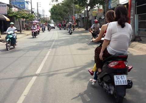 | Không đội mũ bảo hiểm khi lưu thông trên đường dịp Tết Ất Mùi. Ảnh: Phan Cường |