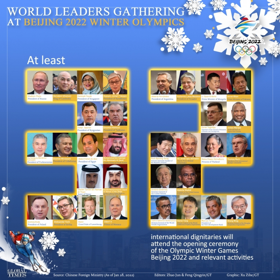Các lãnh đạo nước ngoài dự Olympic mùa Đông Bắc Kinh. (Ảnh: Thời báo Hoàn cầu)