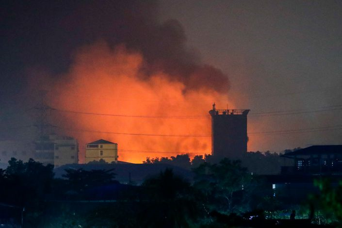 Đài truyền hình quân sự Myawady của Myanmar thông báo, hơn 2.000 người biểu tình vào cuối tuần chặn các con đường để ngăn lực lượng cứu hỏa dập lửa tại một số nhà máy trong các khu công nghiệp, trong đó có các doanh nghiệp Trung Quốc.