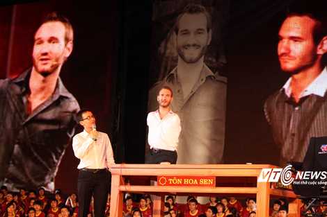 | Nick Vujicic trong buổi diễn thuyết ở Hà Nội |