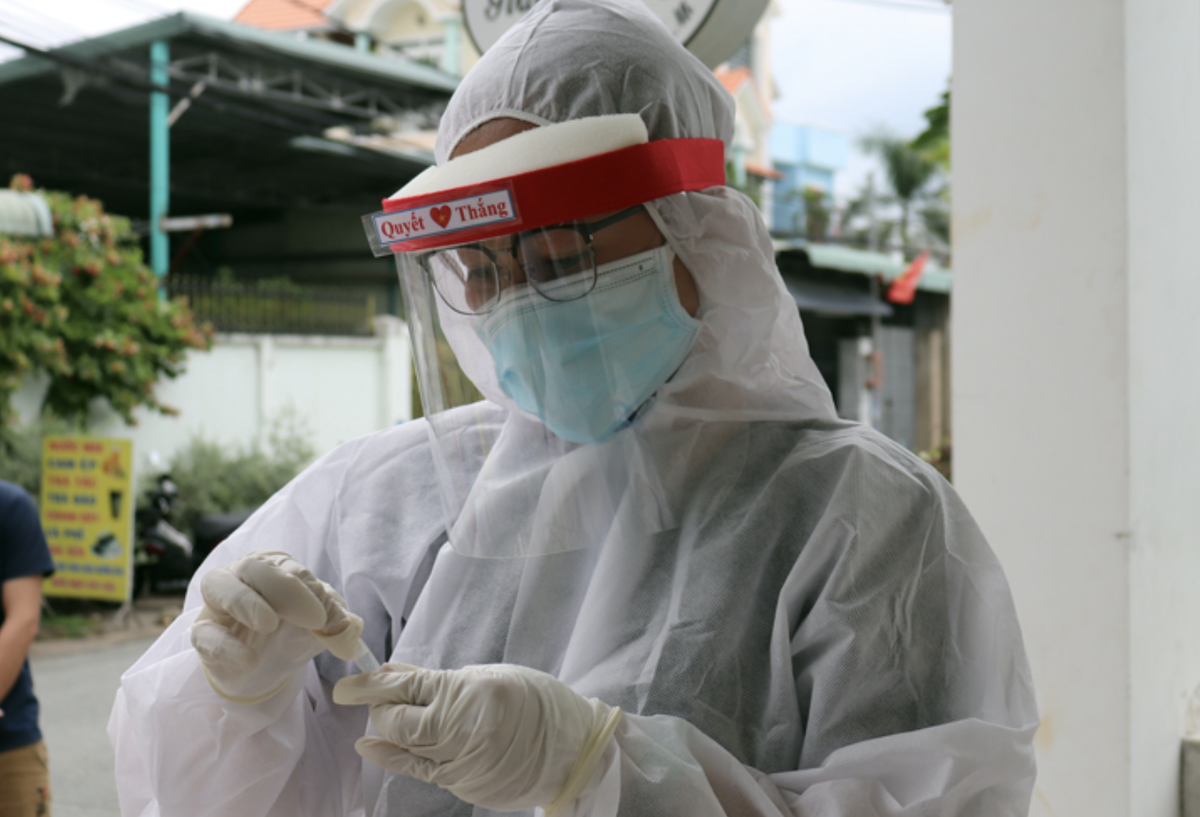 Nhân viên y tế tỉnh Đồng Nai bị lấy mẫu xét nghiệm COVID-19 cho người dân tại TP Biên Hòa.