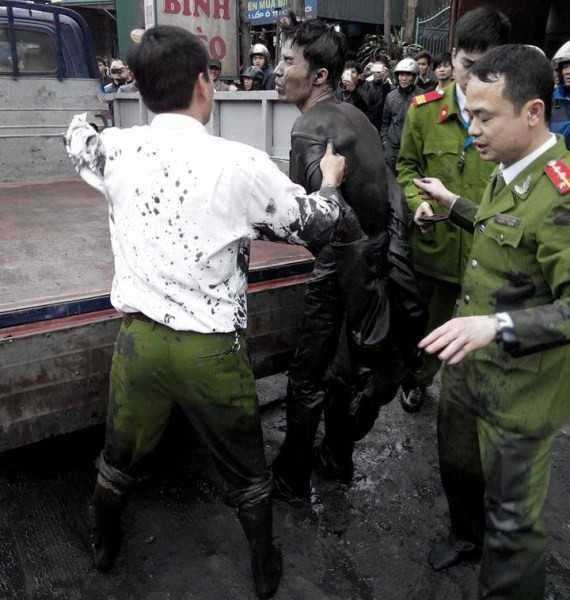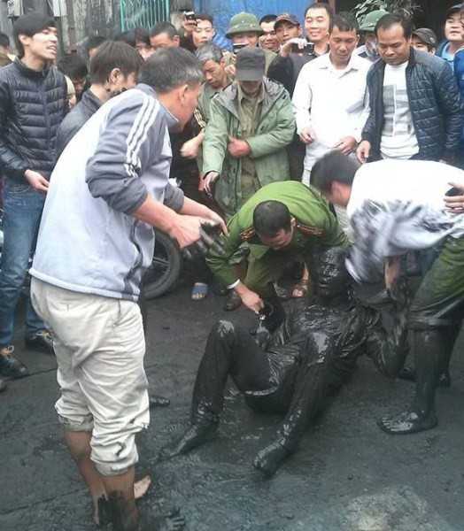 | Theo một nhân chứng kể lại: "Tôi nghe thấy tiếng la hét, tưởng chuyện gì chạy ra thì thấy một thanh niên trên người đen kịt toàn bùn đang vùng vẫy dưới rãnh. Bất chấp mọi người kêu gọi, thanh niên này càng la hét to. Tại đây, có một người nói thanh niên này thần kinh bị kích thích vì trước đó sử dụng ma túy đá nên khi thuốc chưa hết tác dụng sẽ không nghe lời bất cứ ai. Ngay sau đó, có người đã gọi điện cho công an phường tới giải quyết. Khi công an có mặt, thanh niên trên vẫn cứ tiếp tục vùng vẫy, la hét không chịu lên. Do phải vật lộn với thanh niên này để đưa lên bờ nên 4 chiến sĩ công an và một số người dân cũng bị vẩy bùn lên khắp người". |