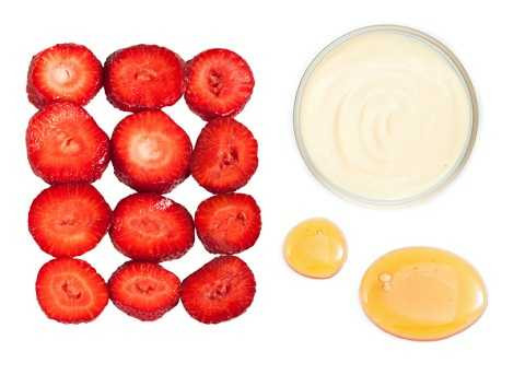 Trộn dâu tây với sữa chua và mật ong. Thoa lên mặt đã rửa sạch, sau 20 phút rửa lại bằng nước ấm.