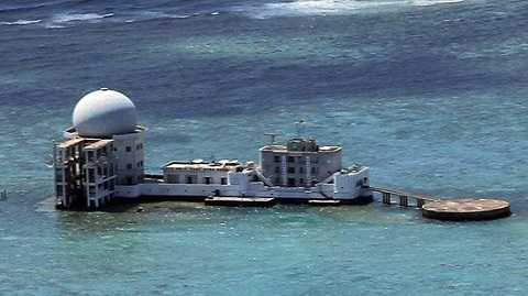 | Ảnh chụp của Hải quân Philippines cho thấy Trung Quốc đã xây dựng các trạm radar trái phép tại khu vực đá Vành Khăn thuộc quần đảo Trường Sa của Việt Nam |