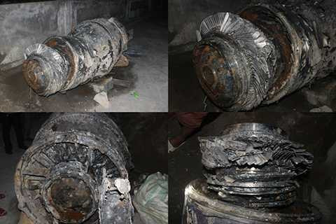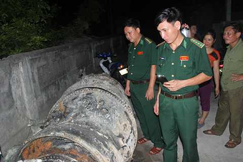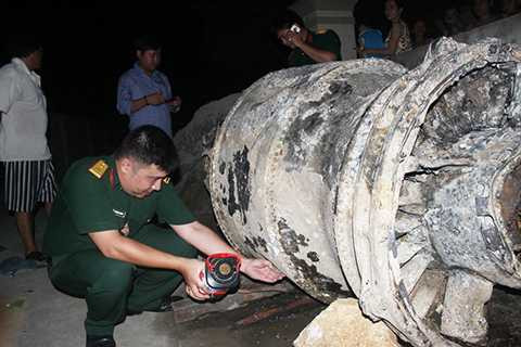 | Bộ phận kỹ thuật quân sự tỉnh Hà Tĩnh bước đầu nhận định, rất có thể vật thể này là phần đuôi của máy bay chiến đấu Su22. (Ảnh: Duy Tuấn) |