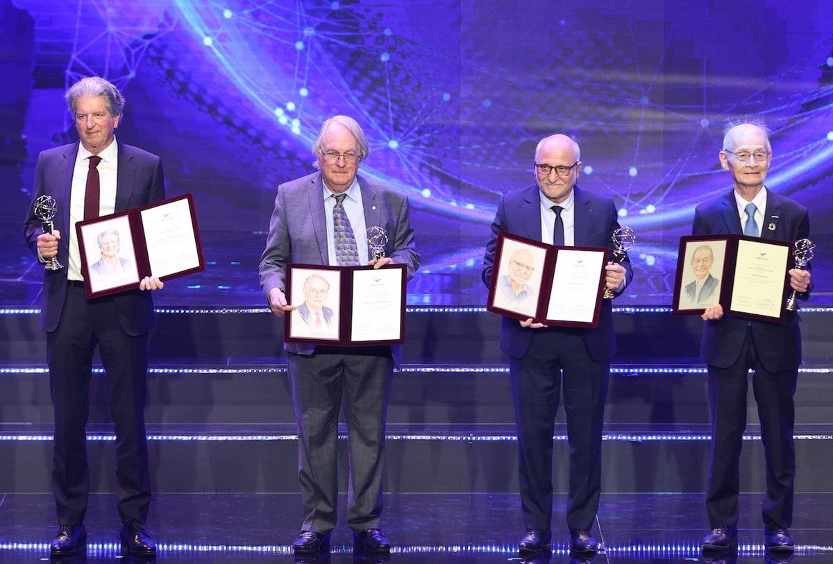 Giải thưởng Chính VinFuture 2023 tối qua được trao cho 4 nhà khoa học: GS Martin Andrew Green (Úc), GS Stanley Whittingham (Mỹ), GS Rachid Yazami (Ma-rốc), GS Akira Yoshino (Nhật Bản) với phát minh đột phá kiến tạo nền tảng bền vững cho năng lượng xanh thông qua việc sản xuất bằng pin mặt trời và lưu trữ bằng pin Lithium-ion.