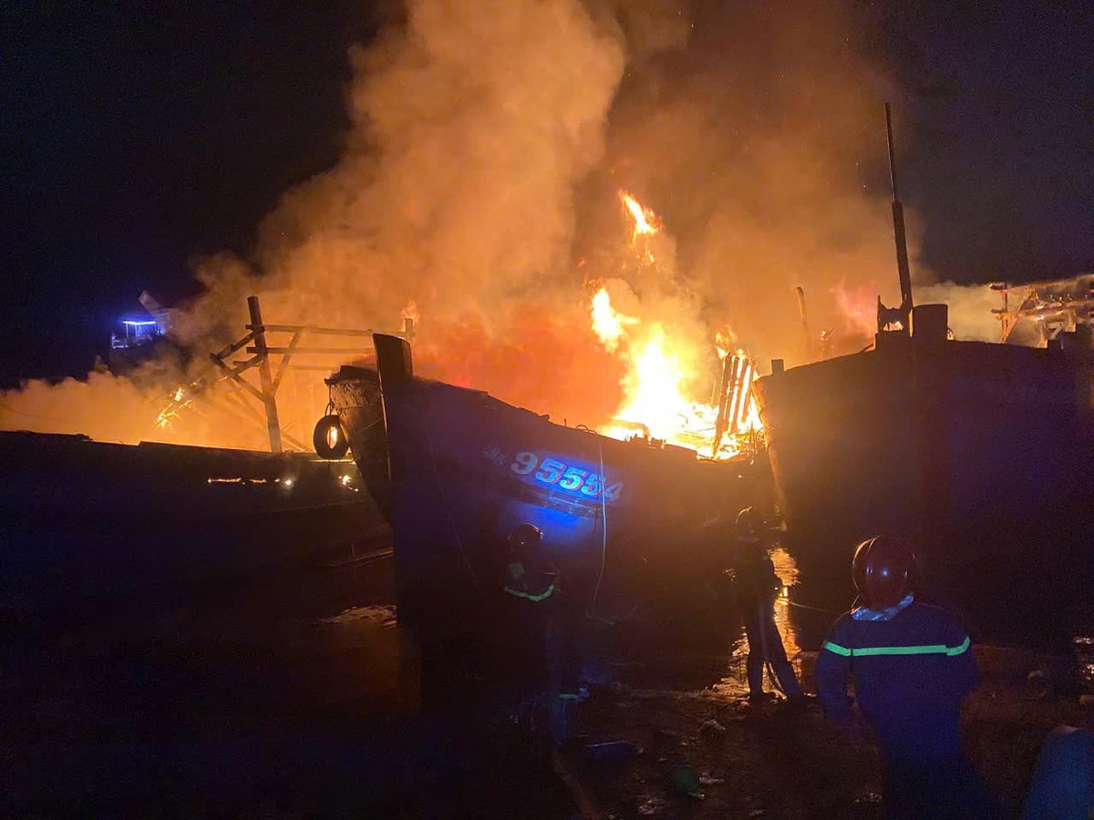 Theo thông tin ban đầu, khoảng 1h cùng ngày, chính quyền địa phương nhận được tin báo của người dân về việc tàu cá đang neo đậu tại bến bất ngờ bốc cháy. Ngọn lửa nhanh chóng lan sang các tàu cá lân cận, tiềm ẩn nguy cơ cháy lan trên diện rộng.