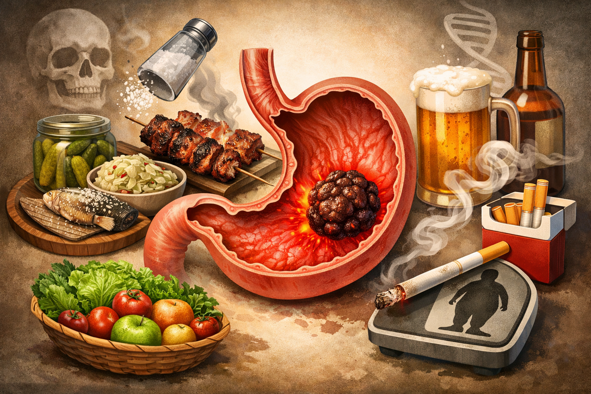 Một trong những yếu tố nguy cơ hàng đầu của ung thư dạ dày là nhiễm vi khuẩn Helicobacter pylori (HP) – tác nhân đã được Tổ chức Y tế Thế giới xếp vào nhóm gây ung thư. Vi khuẩn này gây viêm dạ dày mạn tính kéo dài, có thể tiến triển qua các giai đoạn như teo niêm mạc, dị sản ruột, loạn sản và cuối cùng là ung thư.