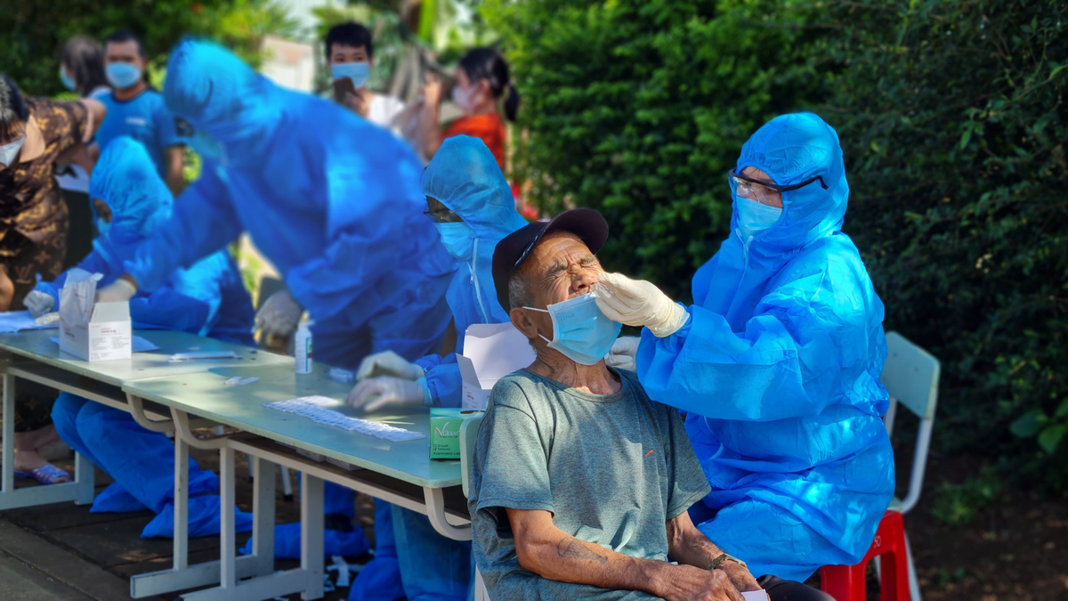 Ngành Y tế tỉnh Gia Lai lấy mẫu xét nghiệm cho người dân. (Ảnh: Hiền Mai)