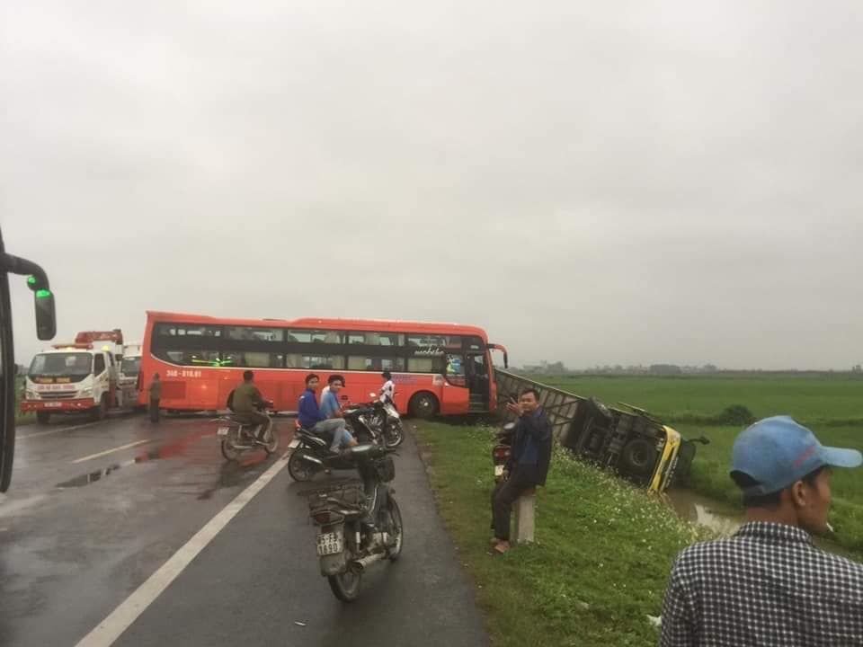 Theo đó, vào khoảng 5h ngày 15/4, xe ô tô 45 chỗ màu vàng biển số 17B-017.26 hướng từ Ninh Bình đi Hà Nội. Khi đi vào đoạn đường nối lên cao tốc Ninh Bình - Cầu Giẽ thì bị lật xe xuống ruộng. Đúng thời điểm này, xe khách 45 chỗ màu đỏ biển số 34B-016.91 chạy phía sau đã tông phải.