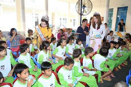 | Đệ nhất Hoa hậu Quý bà Thế giới - Đoàn Thị Kim Hồng, Hoa hậu Quý bà Việt Nam 2009 - Á hậu 2 Hoa hậu Quý bà Thế giới - Hoàng Thị Yến cùng các người đẹp, hoa hậu các dân tộc Việt Nam năm 2011 đến thăm và tặng quà trung tâm nuôi dưỡng trẻ em mồ côi sơ sinh tỉnh Quảng Nam. |