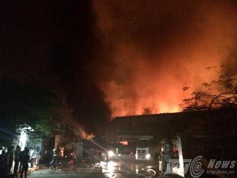 | 1h45 phút ngày 19/10, đám cháy vẫn rực lửa. |