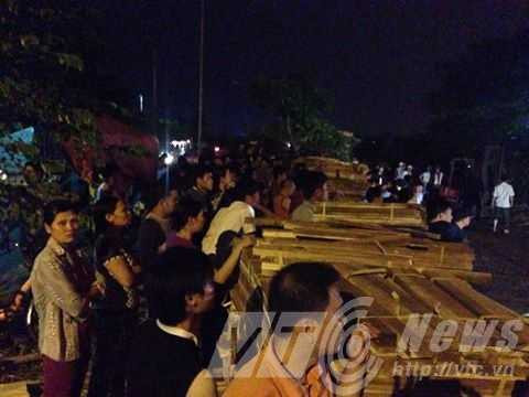 | Hàng trăm người dân tập trung xem cứu hỏa vụ cháy. |