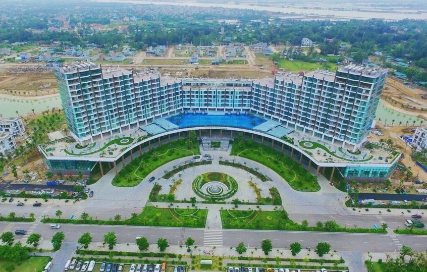 FLC Grand Hotel Sầm Sơn một mặt tiếp giáp đường Hồ Xuân Hương, một mặt soi bóng bên hồ nước rộng 40.000m2