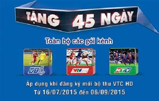 Với 45 ngày trải nghiệm miễn phí tất cả các gói kênh VTC, VTVcab, HTV khi đăng ký mới bộ thu VTC HD. Khán giả truyền hình, đặc biệt là những tín đồ túc cầu giáo sẽ có hội thưởng thức các giải bóng đá hấp dẫn, sôi động nhất hành tinh trên các kênh thể thao của hệ thống truyền hình vệ tinh VTC ngay trong tháng 8 tới đây.