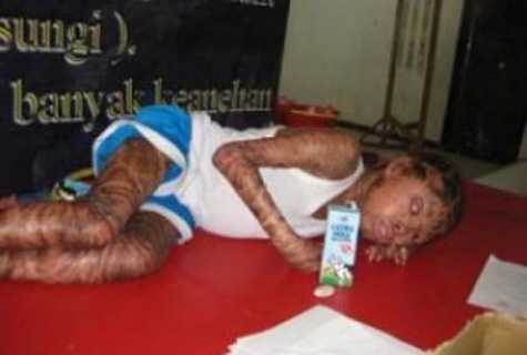 Trẻ sơ sinh trong trường hợp này sinh ra đã có một làn da cứng, dày và khô trên khắp cơ thể.