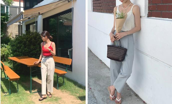 Áo hai dây kết hợp với quần ống bó sát cũng khá sành điệu, nhưng so về độ thời thượng thì vẫn còn kém xa công thức áo hai dây quần ống suông. Combo này rất thoải mái, không hề kén dáng. Chính nét phóng khoáng của combo áo hai dây quần ống suông sẽ giúp người mặc có được vẻ ngoài phong cách, không cần cố. Chị em có thể bỏ áo ngoài quần khi diện áo hai dây quần ống suông cho thoải mái. Nhưng nếu muốn nâng cấp vẻ tinh tế, sành điệu, hãy sơ vin nhé! Đây cũng là cách tuyệt hay để hack dáng.