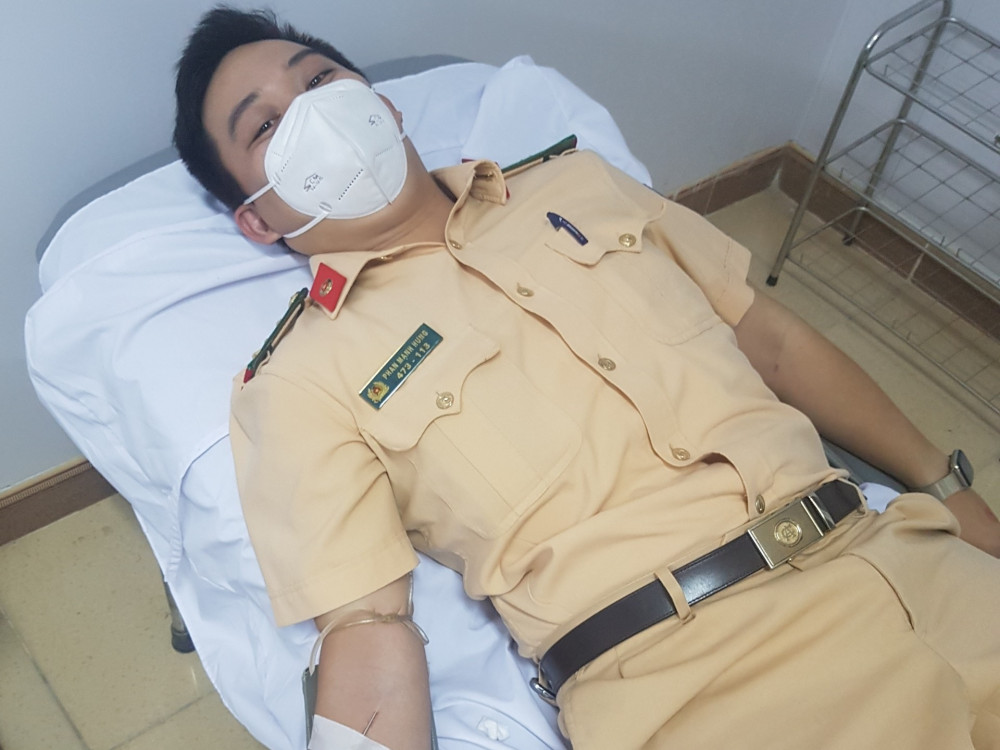 Các chiến sĩ công an hiến máu cứu sống sản phụ trong đêm.