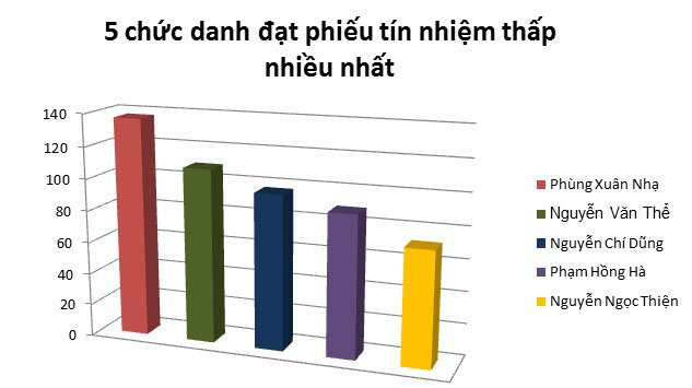 Mỗi chức danh được đại biểu bỏ phiếu theo 3 mức độ tín nhiệm cao, tín nhiệm và tín nhiệm thấp. Trong đó, người nhận được phiếu tín nhiệm thấp nhiều nhất là Bộ trưởng Giáo dục và Đào tạo Phùng Xuân Nhạ với 137 phiếu.