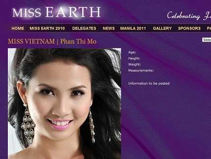 Website của cuộc thi Miss Earth đã cho đăng tải thông tin người đẹp Phan Thị Mơ của Việt Nam, nhưng chỉ vỏn vẹn một dòng họ tên. Đến thời điểm này, hình ảnh ứng viên của đại diện Việt Nam cùng một số ứng viên bị để trống thông tin chi tiết khác trên trang web liệt kê các ứng viên tham dự Hoa hậu Trái đất năm nay đã được bổ sung thêm ảnh đại diện.