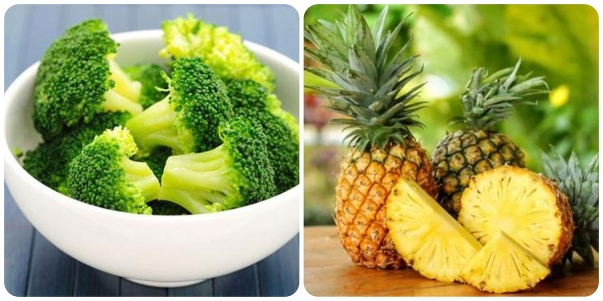 Súp lơ xanh và quả dứa là thực phẩm dưỡng thận tốt.