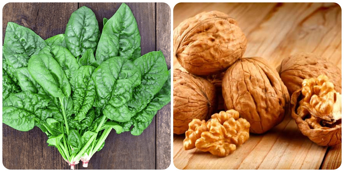 Rau chân vịt và hạt óc chó là hai loại thực phẩm rất giàu Omega-3