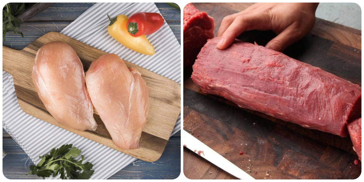 Thịt gà và thăn bò là hai loại thịt rất tốt ăn trong dịp Tết.