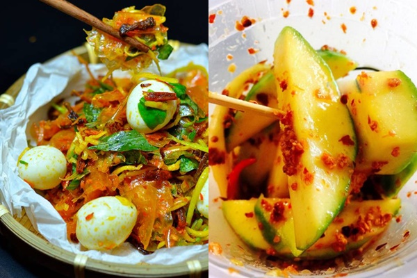 Xoài sống mắm đường, mắm ruốc, muối ớt…