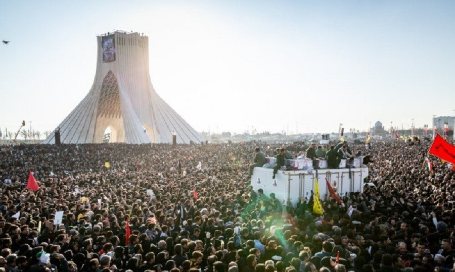 Những người tưởng niệm tướng Qasem Soleimani tại Quảng trường Azadi, Tehran. (Ảnh: Military Watch)