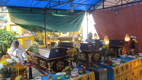 Tại chùa Bửu Hưng Tự - đối diện với ngôi nhà xảy ra cháy, sáng nay, những ai đi ngang qua ngôi chùa này đều không thể cầm lòng, rơi nước mắt khi cả đại tang của một gia đình được thực hiện trong một ngôi chùa.