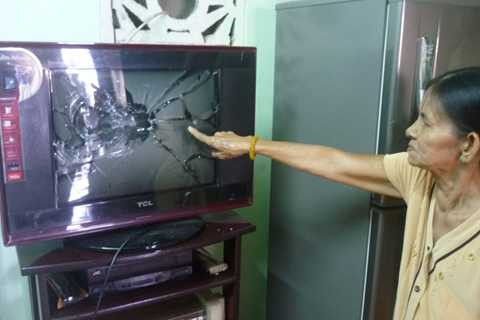 | Đồ đạc trong nhà bà Hạnh bị nhóm côn đồ làm vỡ. |
