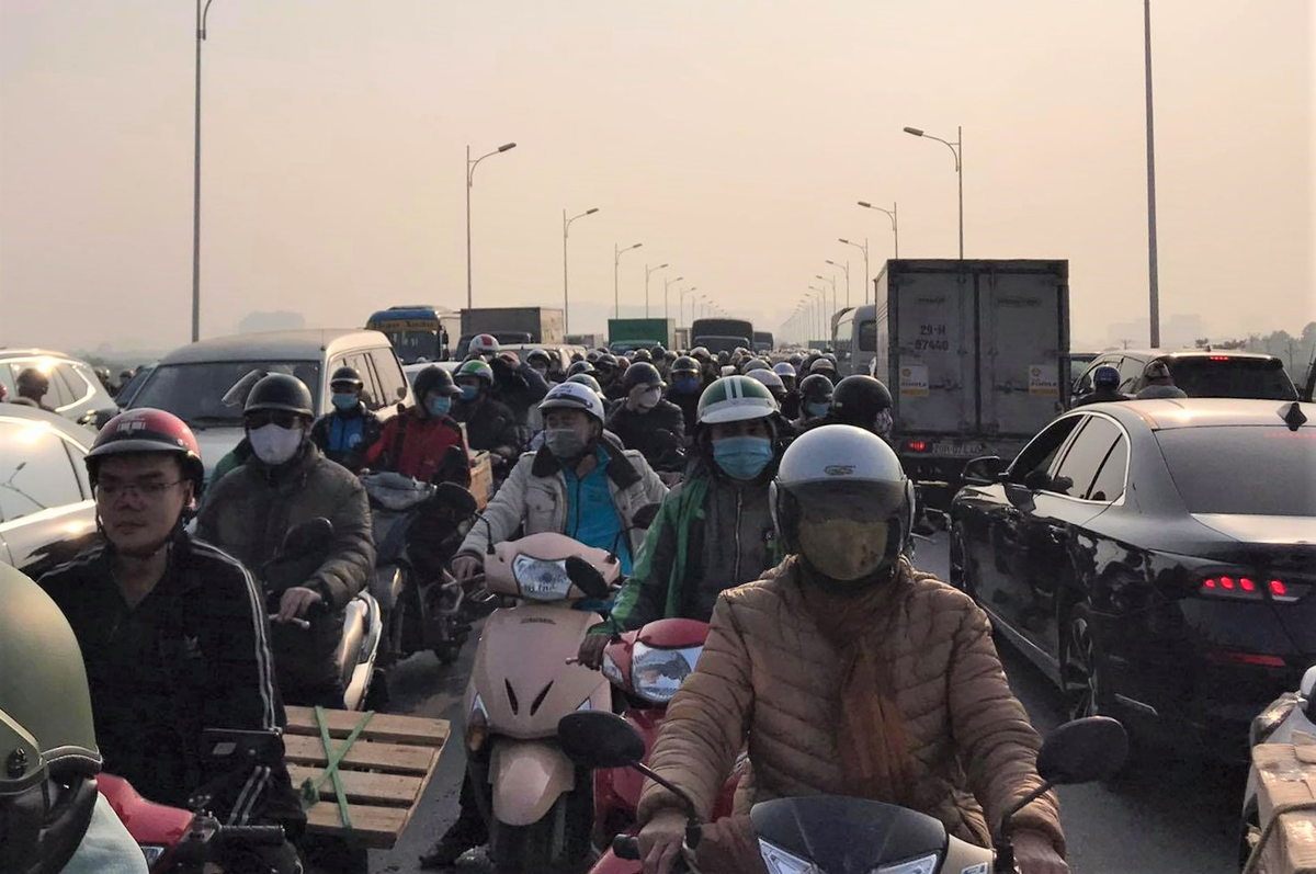 Vụ tai nạn liên hoàn xảy ra khoảng 14h ngày 20/1, tại khu vực cầu Vĩnh Tuy (đoạn thuộc quận Long Biên, TP Hà Nội) khiến giao thông khu vực này bị ùn tắc kéo dài hàng giờ đồng hồ.