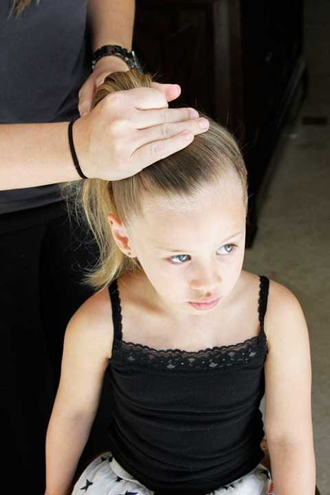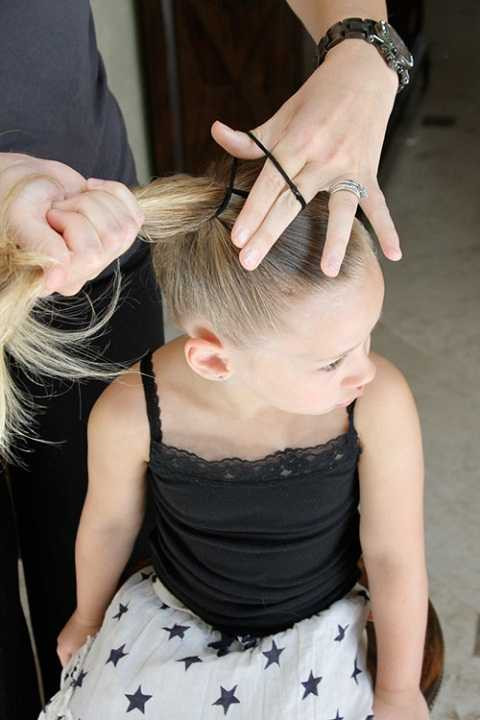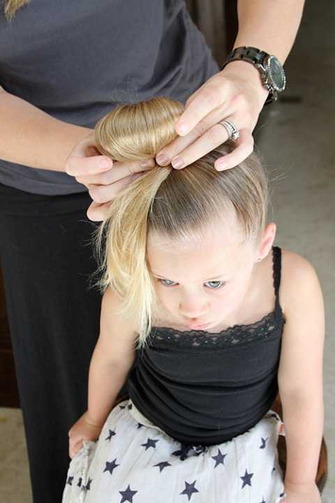 | Dùng lược bàn chải để làm một chiếc đuôi ngựa thật cao cho bé. |