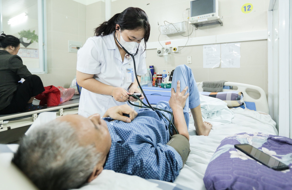 Nhân viên y tế thăm khám cho người bệnh. (Ảnh: Như Loan)