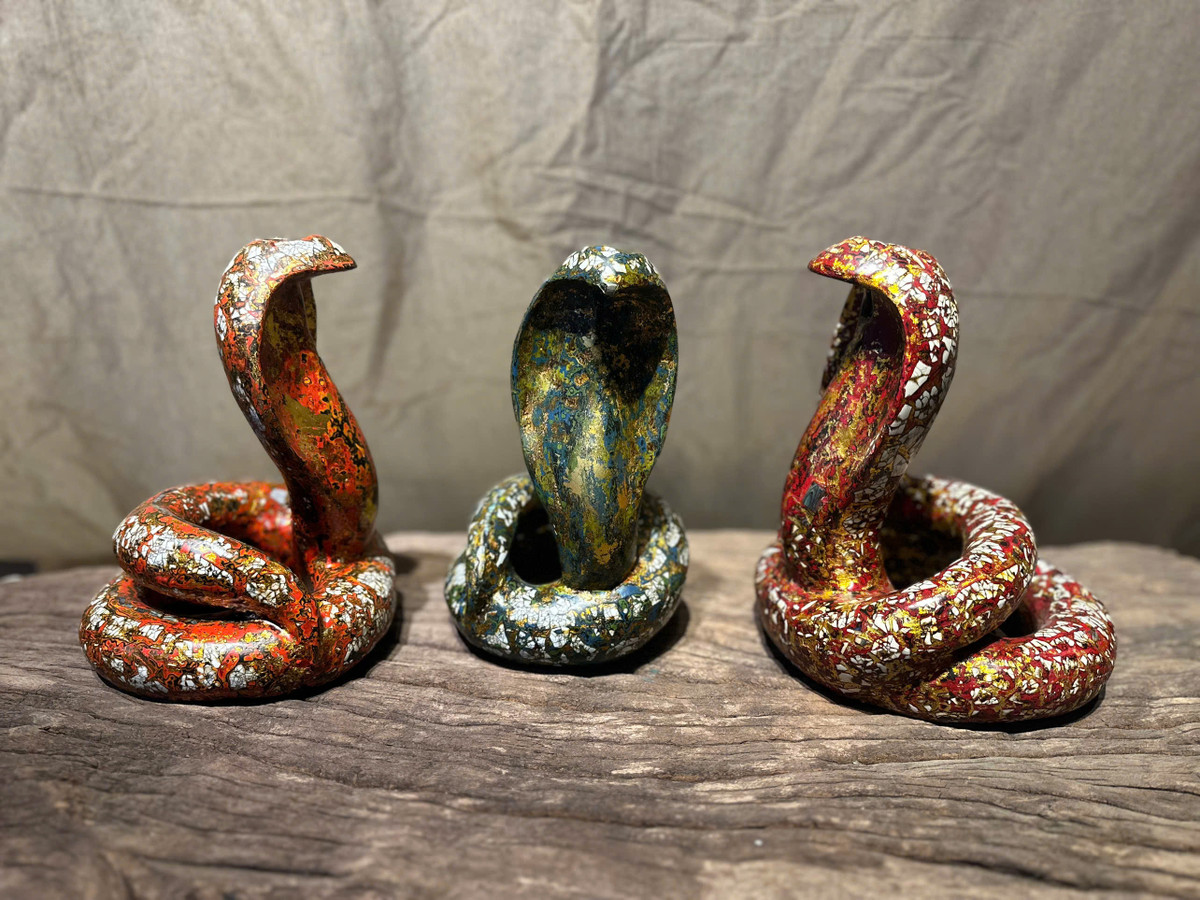 “Mỗi tượng rắn được tạo tác từ gỗ mít mất khoảng 1 một ngày. Sau đó là đến công đoạn sơn mài kéo dài khoảng hơn 1 tuần. Lớp sơn mài bao phủ rắn tạo nên sự rực rỡ, hài hòa giữa truyền thống và hiện đại.
