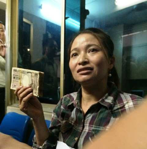 Số tiền yen Nhật chị Hồng nhận được. Ảnh: Phan Cường
