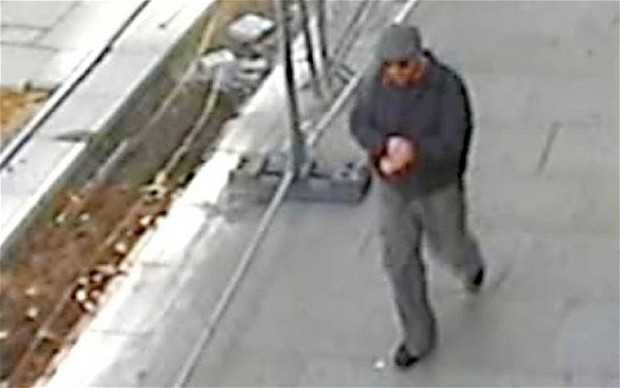 | Hình ảnh tên cướp ngân hàng Halifax hôm 22/10/2011 từ một camera giám sát trên phố trước khi hắn thực hiện vụ cướp. Ảnh: Telegraph. |
