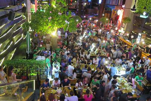 Nhà hàng Pocpoc Beer Garden, Q.3, TP.HCM về đêm trở thành một vũ trường lộ thiên giữa trung tâm TP, thu hút hàng trăm dân chơi tìm đến giải trí trong bia rượu, khói thuốc shisha và âm nhạc sôi động.