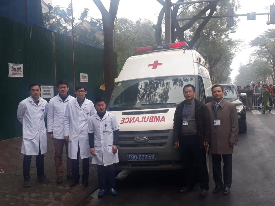 Ngay tại Sân bay Quốc tế Nội Bài, Sở Y tế Hà Nội đã bố trí Tổ Cấp cứu y tế của Trung tâm 115 thường trực cán bộ và xe ô tô cứu thương trực đón và tiễn Đoàn, tháp tùng Đoàn đại biểu từ sân bay Quốc tế Nội Bài về Hà Nội.