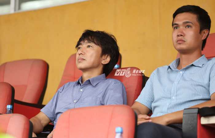 | HLV Miura dự khán tại Hàng Đẫy (Ảnh: Phạm Thành) |