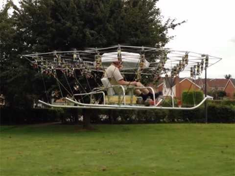 (VTC News) - Một nhóm các chàng trai ở Anh đã ghép thiết bị bay mini điều khiển (drone) thành máy bay trực thăng 54 cánh quạt đủ sức nâng 1 người bay lên khỏi mặt đất ở độ cao 4 mét.
